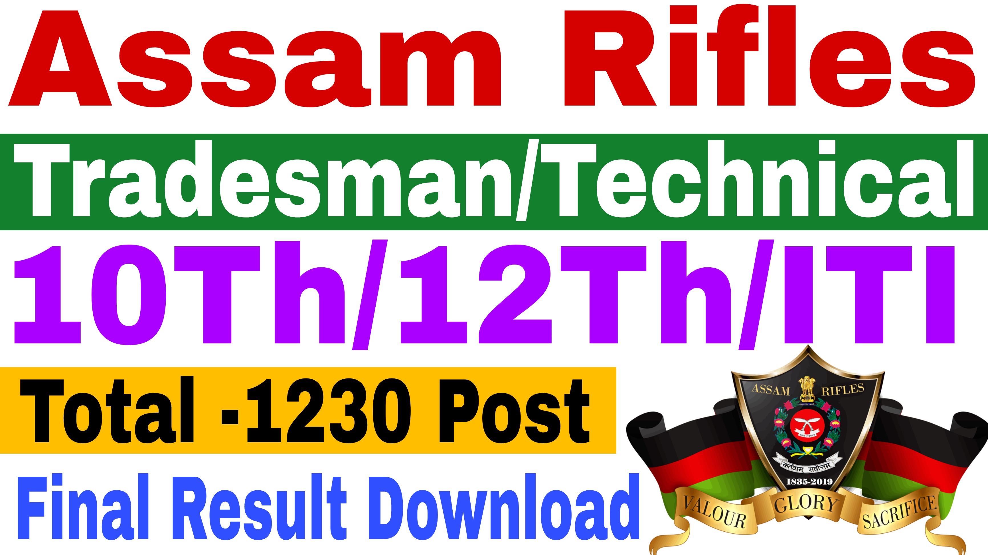 FINAL RESULT OF ASSAM RIFLES TECHNICAL & TRADESMAN RECRUITMENT RALLY 2021-22
