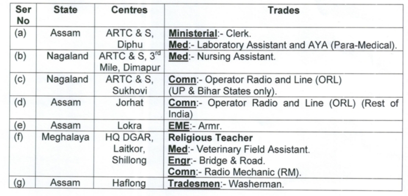 Physical Standard Test (PST)/Physical Efficiency Test (PET), Trade (Skill) Test (TT) and Written Test will be conducted simultaneously at following seven nominated centres wef 01 September 2022 onwards.