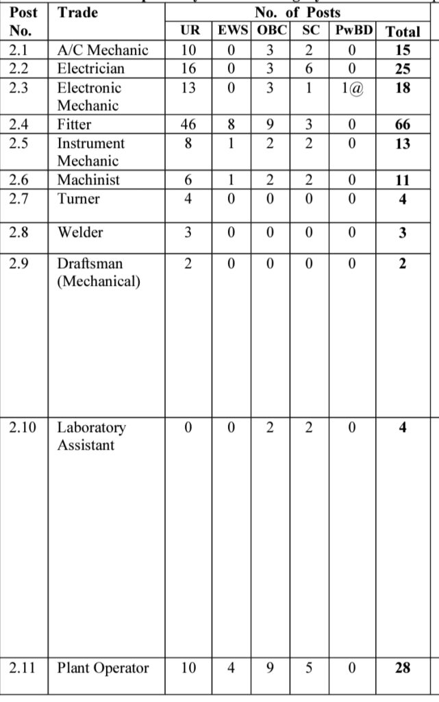 SSC with a minimum 60% marks in aggregate PLUS Trade certificate in A/C Mechanic; Electrician; Electronic Mechanic; Fitter; Instrument Mechanic; Machinist; Turner; Welder.