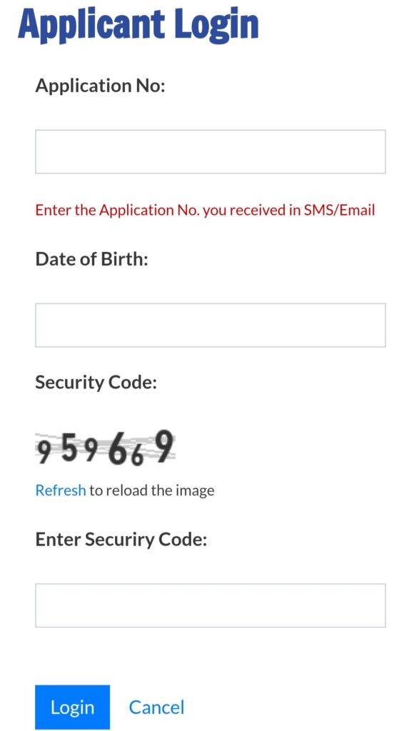 फिर अपना Application Number एवं Date of Birth तथा Security Code दर्ज करके Login करे | जैसे ही आप लॉगिन करेंगे आपका एडमिट कार्ड डाउनलोड हो जाएगा |