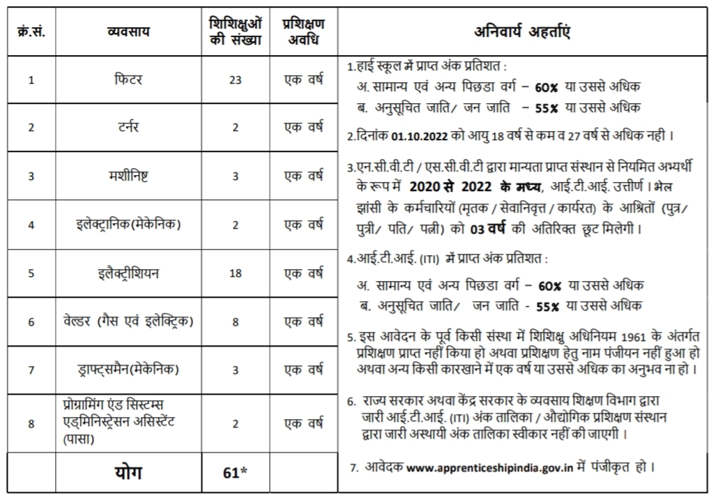 BHEL Jhansi Apprentice Recruitment 2022 Overview