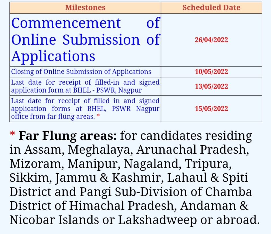 The submission of application will be online only through our website pswr.bhel.com OR www.bhelpswr.co.in OR https://careers.bhel.in