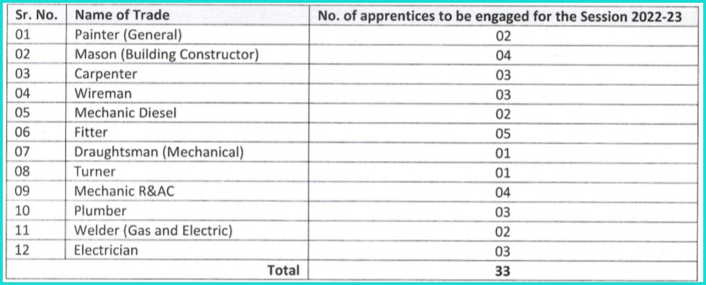 The Trade Apprentices will be engaged on the basis of the performance in their personal interview. The details of the number of apprentices to be engaged are as follows.