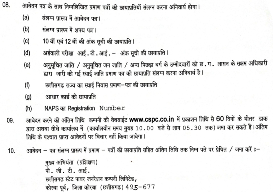 CSPGCL ITI Apprentice Form 2022