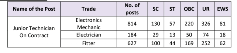 Candidate should have passed ITI (2 years) in the trades of Electronics Mechanic / Electrician / Fitter (this includes NTC, Board Based Basic Training as well as advanced modules under Multi skilled training pattern of Directorate General of Labour & Employment being implemented through ITI upgraded as Centre of Excellence in required trades). In addition, one year Apprenticeship (NAC issued by Ministry of Skill Development) is mandatory. One-year post qualification experience in manufacturing, production, quality, material management in an industrial establishment will be added advantage.