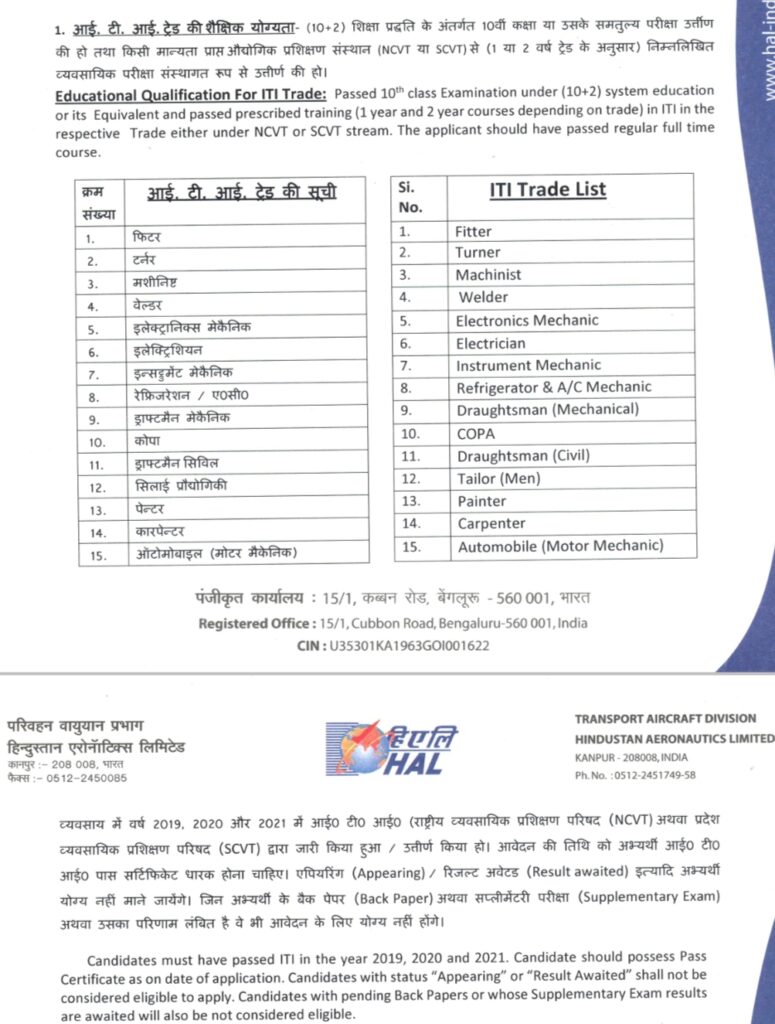 | Official Advertisement & Application Form | https://hal-india.co.in/Common/Uploads/Resumes/1521_CareerPDF1_Apprentices%20Training%20at%20HAL-TAD%20Kanpur%202022-23.pdf |