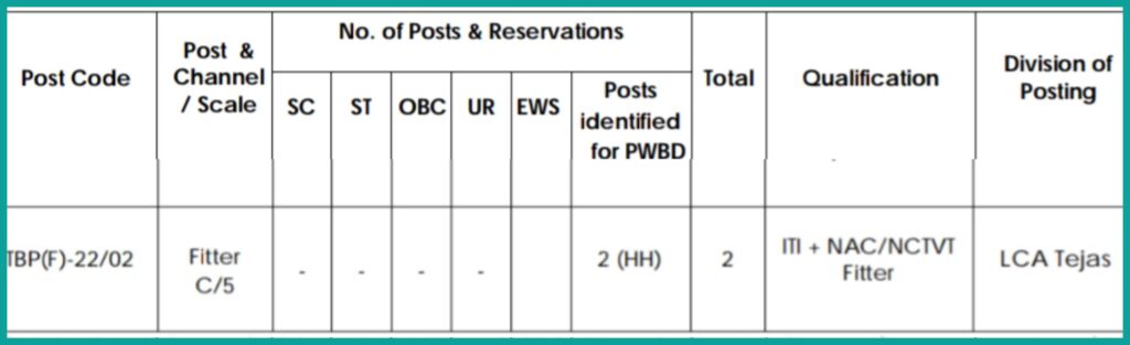 HAL Recruitment 2022- LCA Tejas Division, HAL, Bangalore Complex is in the process of inducting Personnel for the post of Fitter (unfilled backlog vacancies) in PWBD Categories on Tenure Basis for a period 4 (Four) Years in the Non- Executive Cadre, to be posted in LCA Tejas Division and Aerospace Division or to any Divisions / Offices of HAL / Indian Air force Bases (IAF) Outstation bases.
