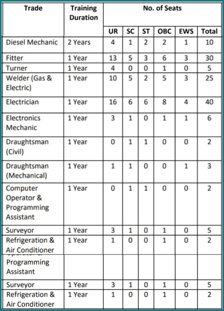 The candidates will be selected on the basis of merit based on their marks obtained in ITI & 10th. A weightage of 30% to marks scored in relevant trade in ITI & a weightage of 70% shall be given to marks scored in 10th board.