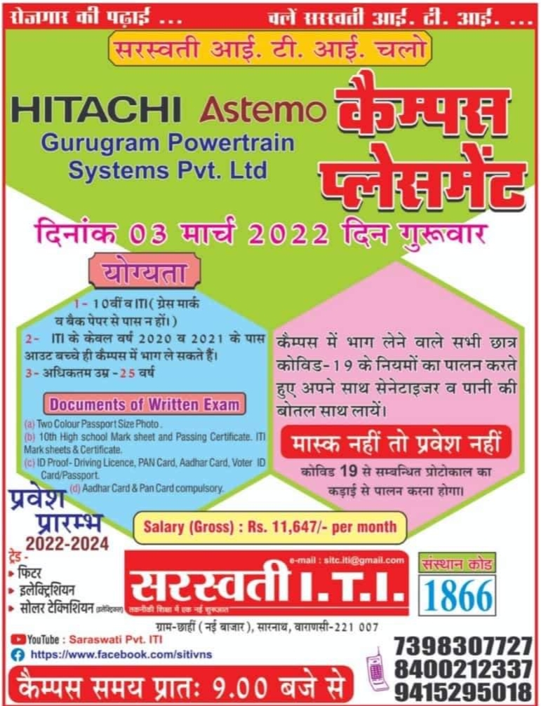 - Saraswati Private ITI Varanasi, Uttar Pradesh