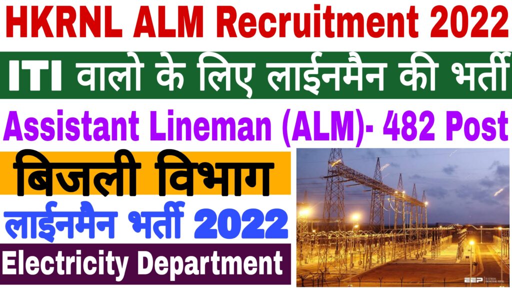 HKRNL ALM Recruitment 2022- 482 Post, Eligibility, Salary, Selection Process and Full Notification- Haryana Kaushal Rozgar Nigam Limited (HKRNL) Are Invited Online Application Form for the Post of Assistant Lineman (ALM) on Contractual Basis. Those Candidates Are Interested to the Following Recruitment Can Read the Full Notification Before Apply Online Form.