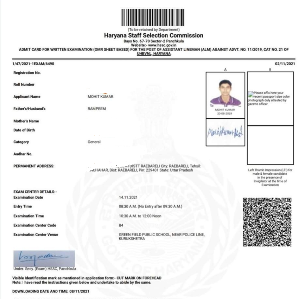 HSSC ALM Admit Card Download