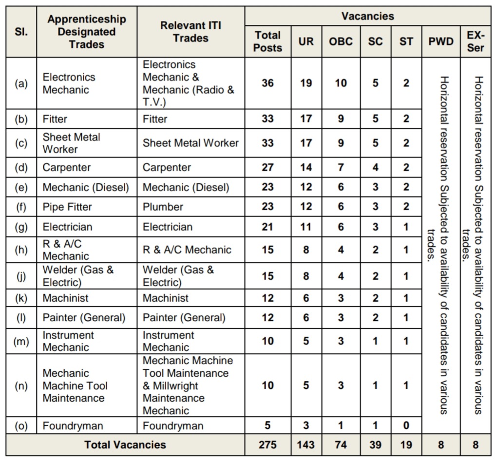 SSC / Matric / Std X Pass With 50% Marks and ITI (NCVT/SCVT) Pass In Relevant Trade With 65% Marks.