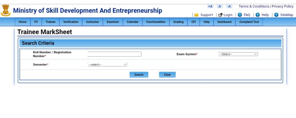 - NCVT Portal पर आपके सामने तीन ऑप्शन दिखेगा | सबसे पहले वाले में आप अपना Roll Number या Registration Number दर्ज करें |