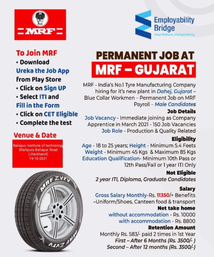 MRF Tyres Campus Placement 2021 For ITI Students (Only Male Candidates)