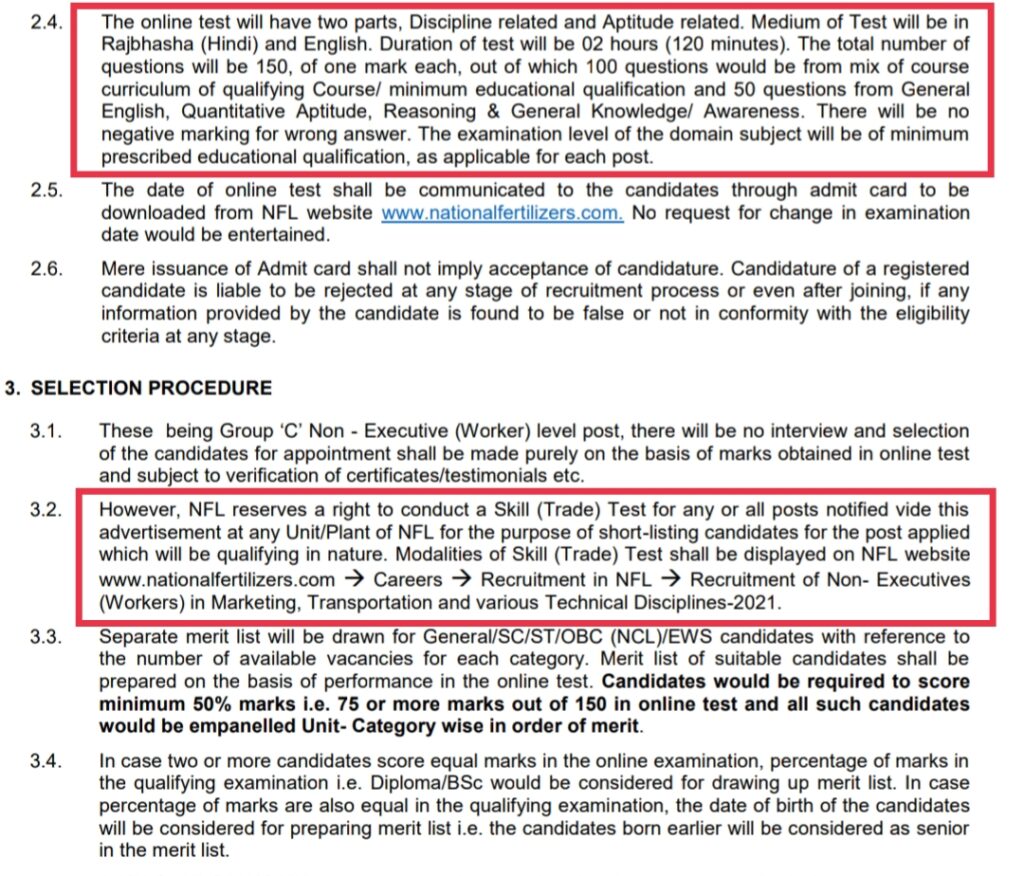 Important Note- NFL अटेंडेंट ग्रेड 1 पद के लिए स्किल टेस्ट ले भी सकता हैं या नहीं भी ले सकता हैं यह अधिकार NFL अपने पास रखती हैं |