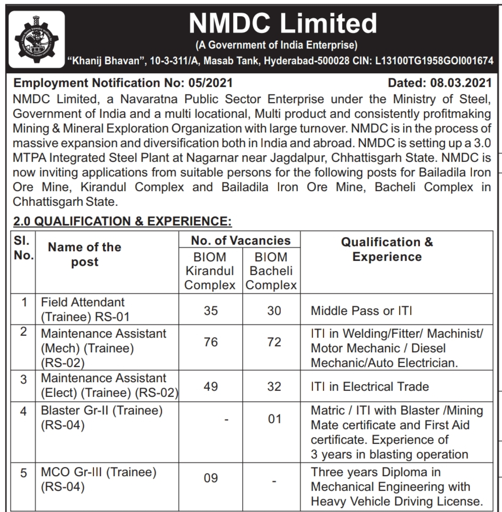 | Official Website | https://www.nmdc.co.in/careers/ |