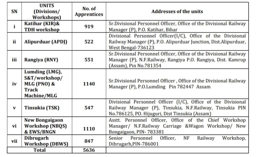 North East Frontier Railway Apprentice Form 2022- 5636 Post, Eligibility, Stipend, Selection Process and Full Notification- North East Frontier Railway (NFR) Are Invited Online Application Form for the Post of ITI Apprentice. Those Candidates Are Interested to the Following Recruitment Can Read the Full Notification Before Apply Online Form.
