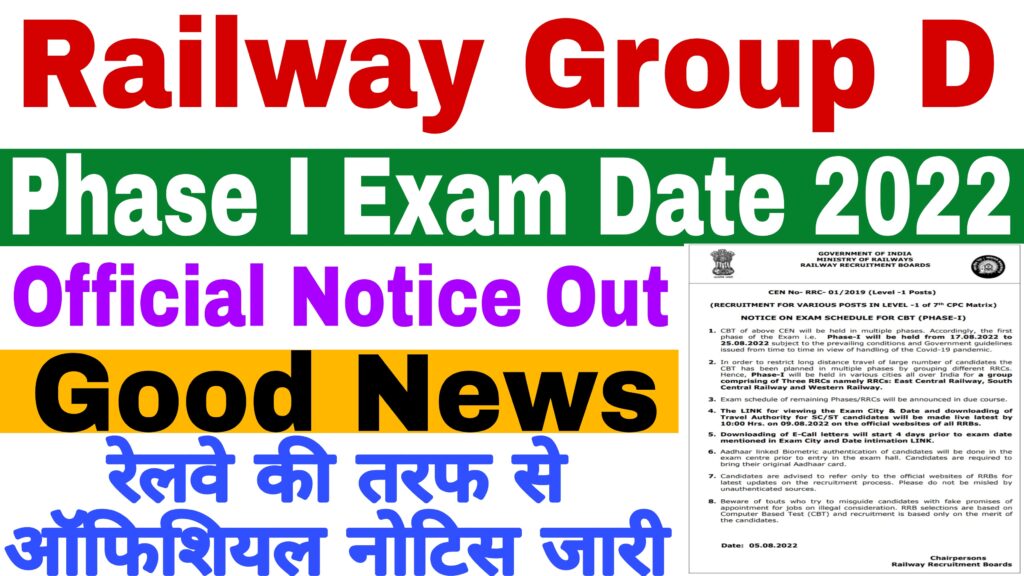 CBT of above CEN will be held in multiple phases. Accordingly, the first phase of the Exam i.e. Phase-I will be held from 17.08.2022 to 25.08.2022 subject to the prevailing conditions and Government guidelines issued from time to time in view of handling of the Covid-19 pandemic.