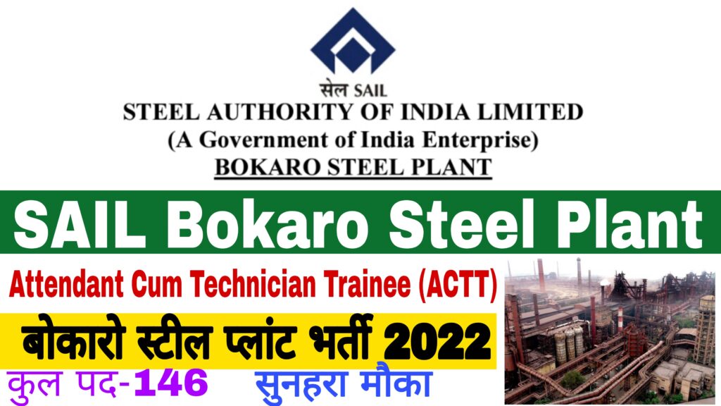 SAIL Bokaro Steel Plant ACTT Recruitment 2022- 146 Post, Eligibility, Salary, Selection Process and Full Notification- SAIL Bokaro Steel Plant Are Invited Online Application Form for the Post of Attendant Cum Technician Trainee (ACTT) (NAC) on Permanent Basis. Those Candidates Are Interested to the Following Recruitment Can Read the Full Notification Before Apply Online Form.