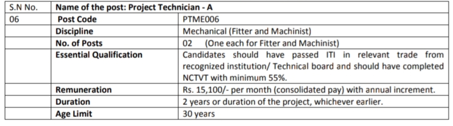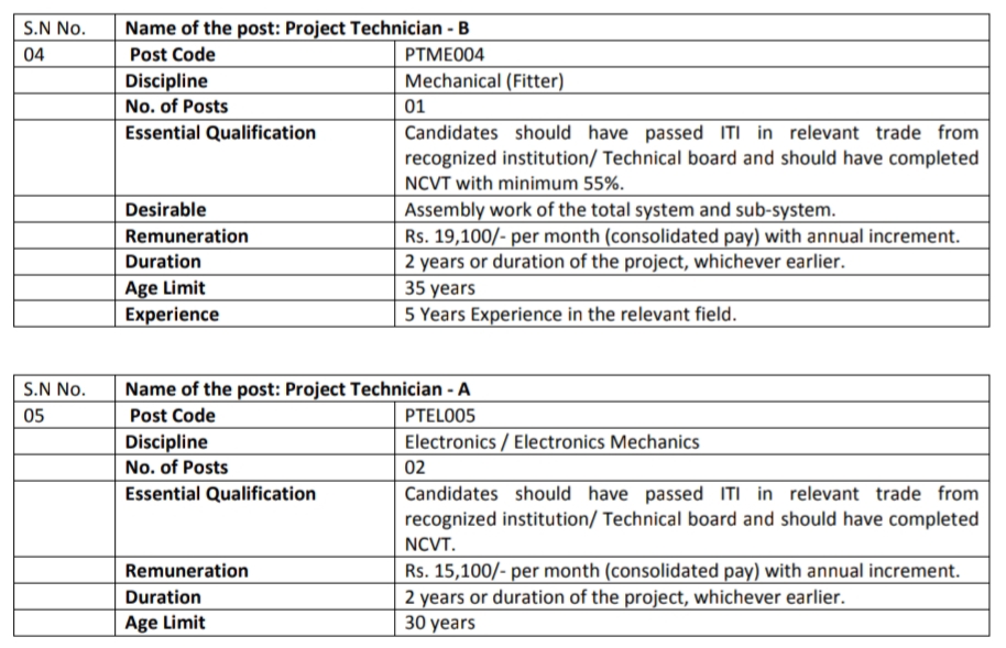 The positions indicated under the projects concerned, are proposed to be filled purely on contract basis only as per post wise period mentioned from the date of appointment. This period can be extendable subject to performance & approval of the competent authority up to a maximum of project completion term and not beyond that and there is no scope of continuation / regularization / absorption under any circumstances.