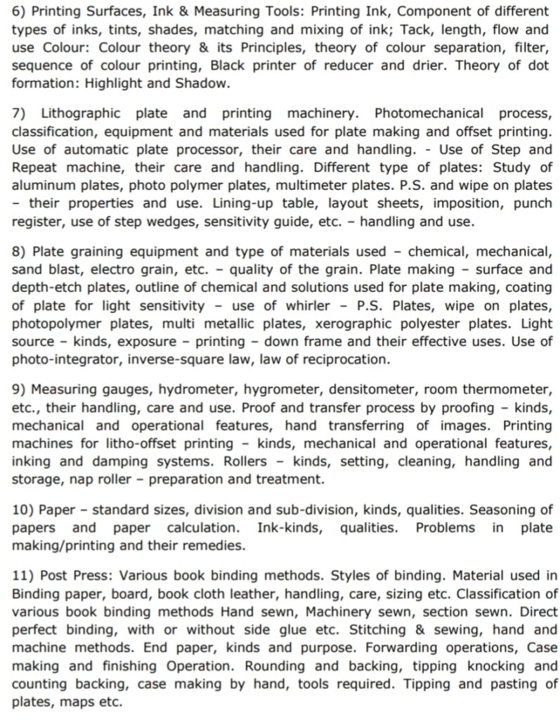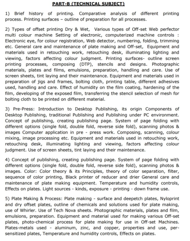 INDICATIVE SYLLABUS FOR PART-B (TECHNICAL SUBJECT) FOR THE POSTS OF Jr. Technician(Printing) & Jr. Technician(Control)