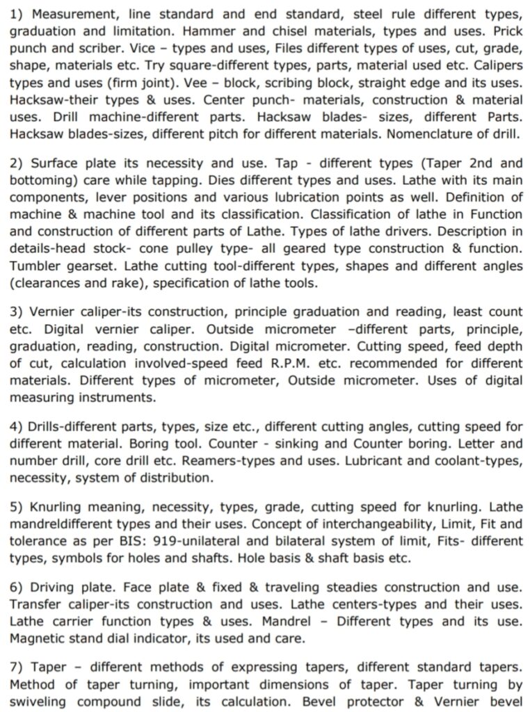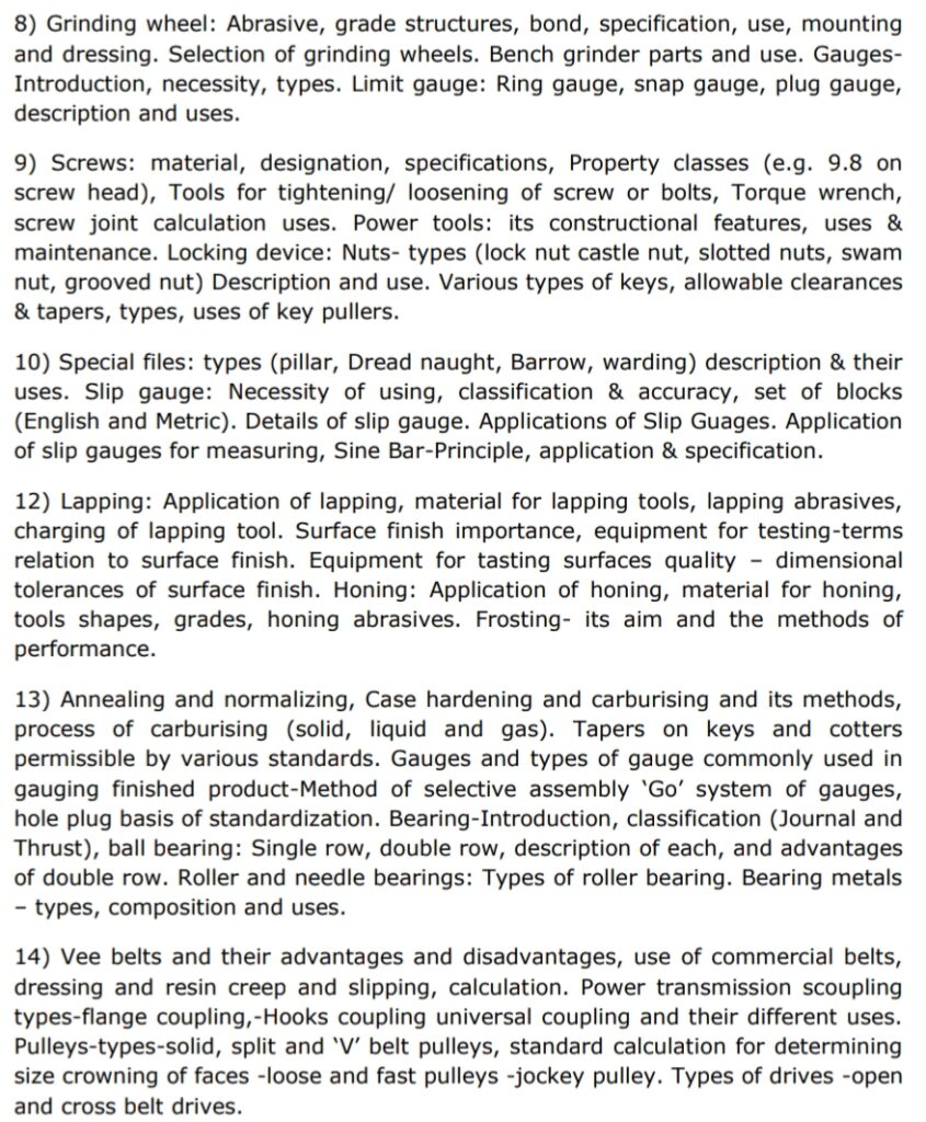 INDICATIVE SYLLABUS FOR PART-B (TECHNICAL SUBJECT) FOR THE POSTS OF Jr. Technician (Fitter)