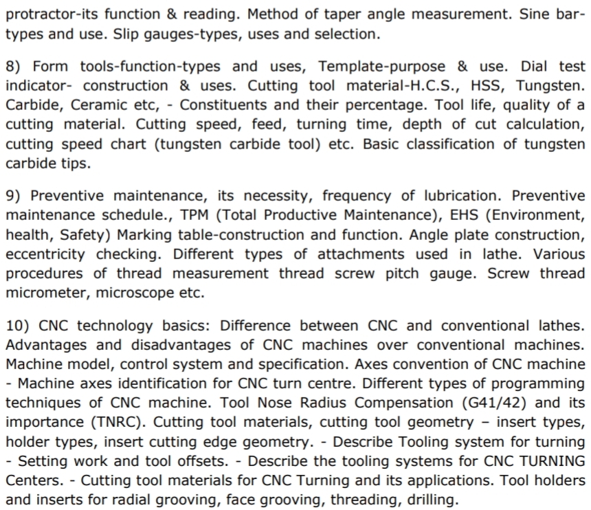 INDICATIVE SYLLABUS FOR PART-B (TECHNICAL SUBJECT) FOR THE POSTS OF Jr. Technician (Turner)