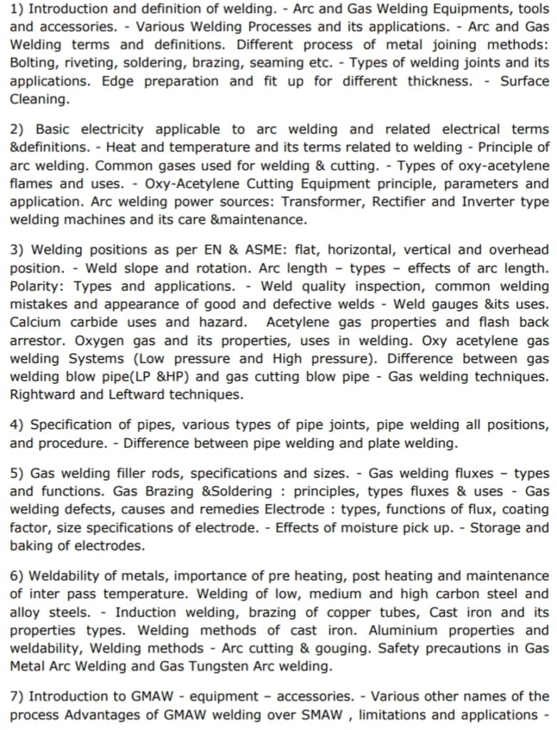 INDICATIVE SYLLABUS FOR PART-B (TECHNICAL SUBJECT) FOR THE POSTS OF Jr. Technician (Welder)