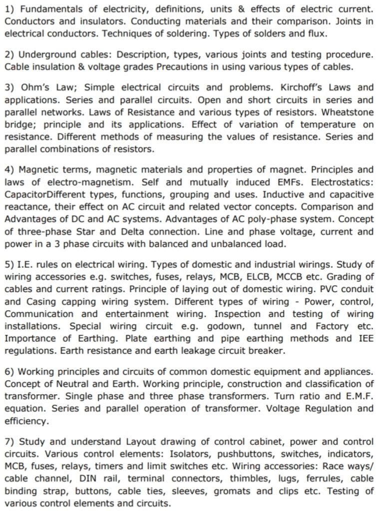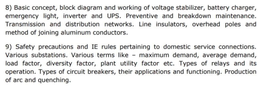 INDICATIVE SYLLABUS FOR PART-B (TECHNICAL SUBJECT) FOR THE POSTS OF Jr. Technician (Electrical)