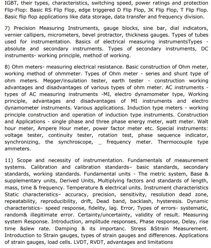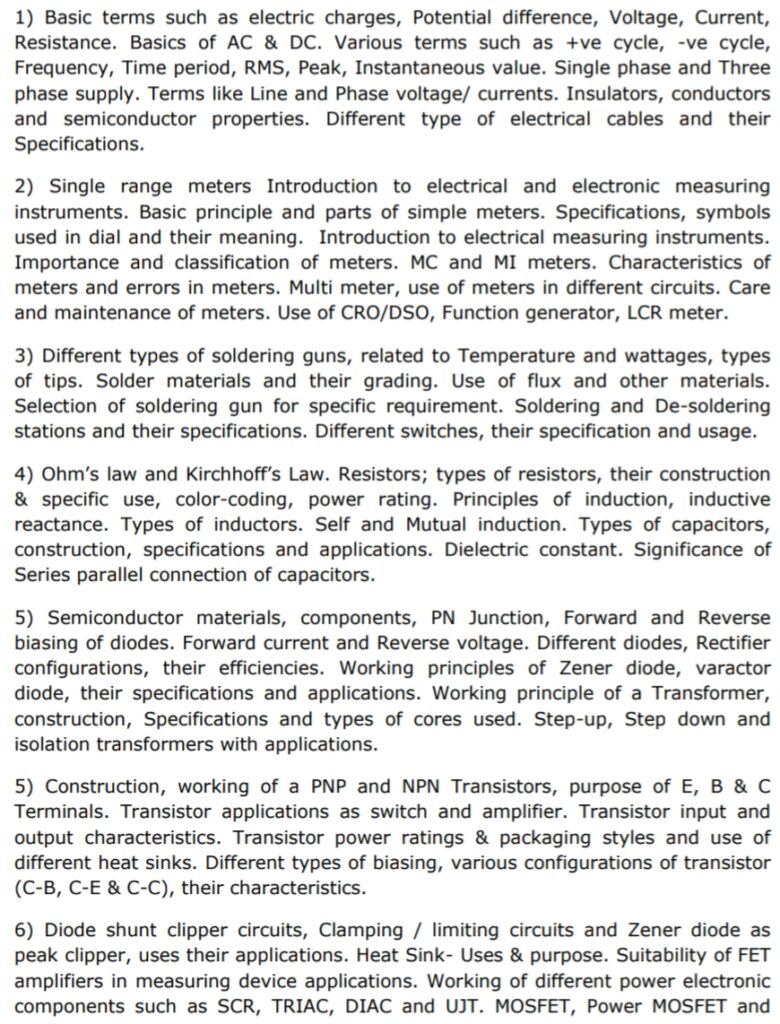 INDICATIVE SYLLABUS FOR PART-B (TECHNICAL SUBJECT) FOR THE POSTS OF Jr. Technician (Electronics/Instrumentation)