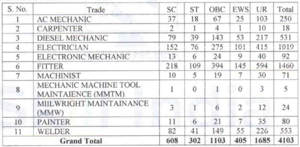 The candidate must have passed 10th class examination or its equivalent (under 10+2 examination system) with minimum 50% marks in aggregate from recognized Board and also possess ITI Certificate in the trade notfied from the institutes recognised by NCVT/SCVT.