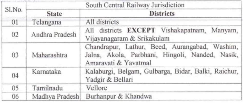 The following are the districts coming under South Central Railway Jurisdiction eligible to apply