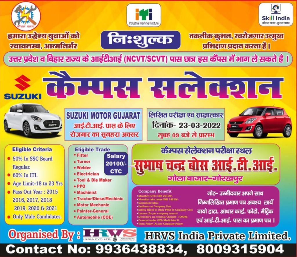 Suzuki Motor Campus Placement 2022 | ITI Pass |