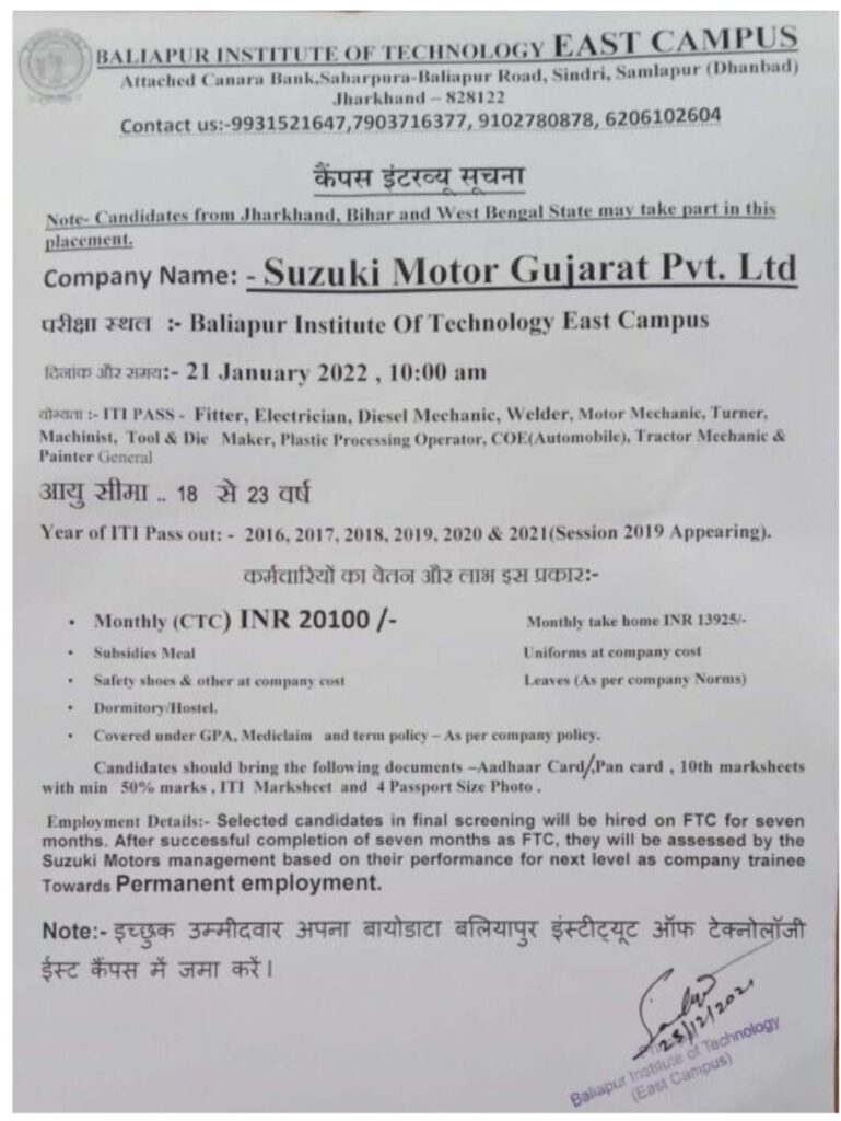 Suzuki Motor Gujarat Pvt Ltd Campus Placement 2022