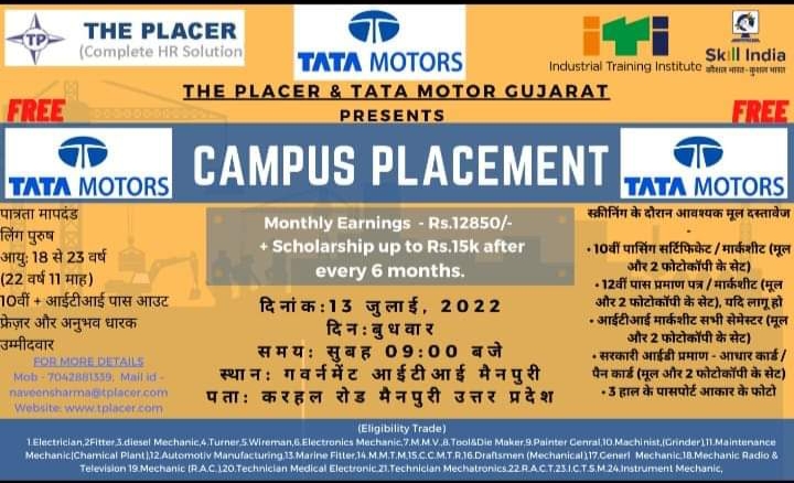 Tata Motors Limited Campus Placement 2022 For ITI Students
