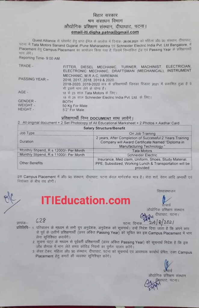 - Place- Government ITI Digha Patna