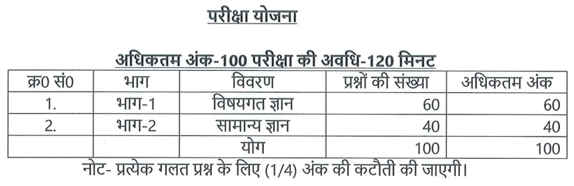 उक्त विज्ञापन के बिन्दु-10 में यह उल्लिखित है कि लिखित परीक्षा हेतु परीक्षा योजना तथा पाठ्यक्रम एवं तिथि के सम्बन्ध में यथासमय सूचित किया जाएगा।