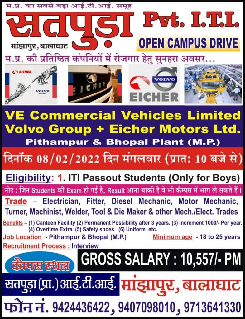 Volvo & Eicher Campus Placement 2022 | 08 February 2022 | ITI Pass |